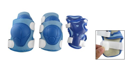 Kids Protective Gear Knee Elbow Wrist Support Blue Wht Review